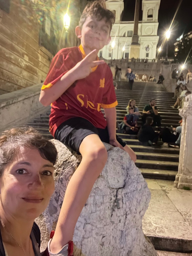 Today, we’ll go to see the Castel Sant’Angelo, the hulking former prison on the banks of the Tiber near the Vatican, then split up: C wants to return to the Capitoline Museum, and I want to get to the MAXXI (21st century art museum— get it?). Tomorrow, we go to Pompeii. It’s hard to imagine we’re not going to be exhausted by that (it’s more than 2 hours travel there and back) so Thursday will be relatively mellow: hopefully nice enough weather to go back to the beach in Ostia. Aryeh and I spent Sunday there with my friend Daniella and her girls, all visiting from Berlin, and their sweet Italian/German friends who live in Rome. Aryeh the only boy, but playing with all of them just so happily. He’s had so little time with kids his own age. And for me to get so much time with a dear friend from high school days (we met at NY Youth Symphony!) was precious.
